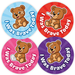 Colourful teddy bear bravery stickers containing the text "I was brave today". These stickers come in six different colour variations, each featuring a cute comic teddy bear. These stickers are great for giving to children that might have hurt themselves, or overcome their fear. You will receive 144 30mm stickers (6 variations) with the text: "I was brave today". Stickers are printed on white self-adhesive A5 sticker sheets with a gloss finish