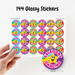 - 144 30mm dance reward stickers printed on 6 A5 sticker sheets (24 stickers per sheet).