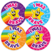 Colourful star bravery stickers containing the text "I was brave". These stickers come in six different colour variations, each featuring a smiling star. These stickers are great for giving to children that might have hurt themselves, or overcome a fear. You will receive 144 30mm stickers. Stickers are printed on white self-adhesive A5 sticker sheets with a gloss finish
